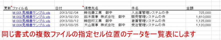 例: 見積書で始まるファイル名を一覧表にするには、 見積書*.xls と設定します。