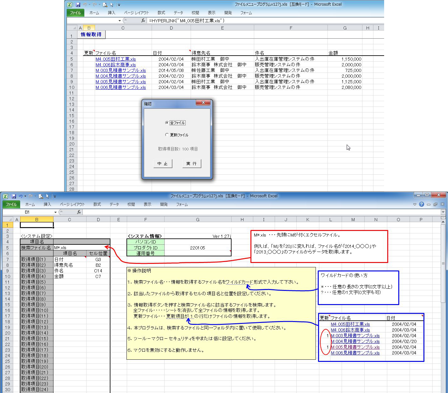 見積書を含むファイル名を一覧表にするには、 *見積書*.xls と設定します。
