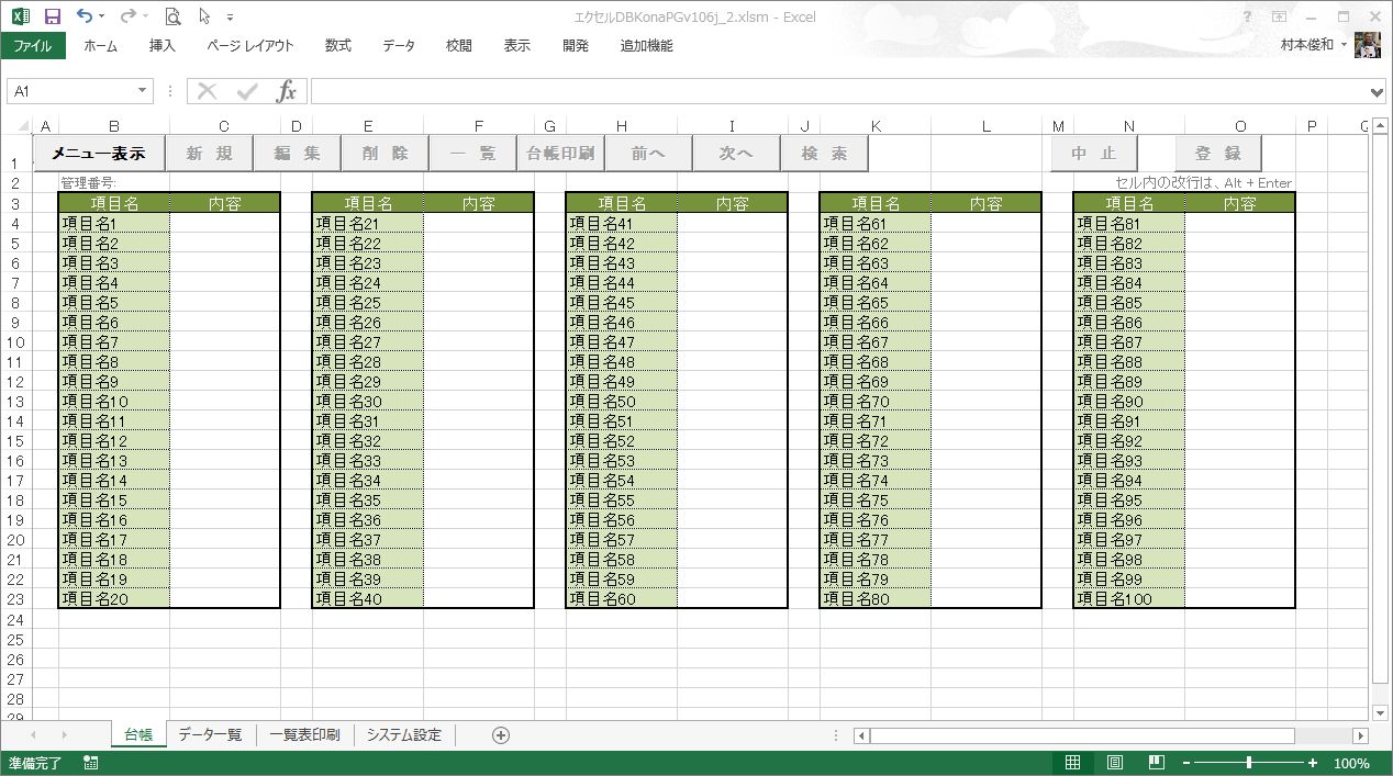 項目名とデータ入力領域を設定します。