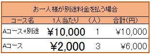 ▼みんなセット料金で、追加料金は一人の代表者が払う場合