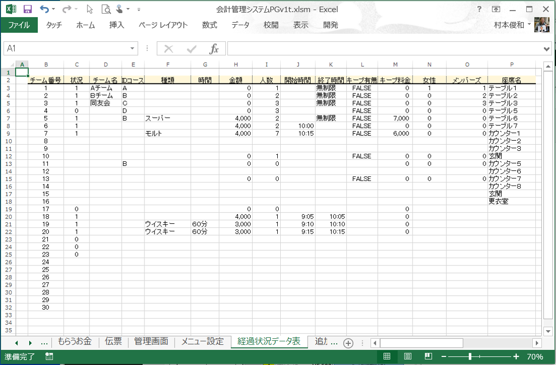 このような会計を精算時にそれぞのお客さんから各々の料金を頂く割勘スナック会計計算システムのご紹介です。