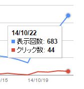 10月18日に142回だった表示回数が、10月22日に683回になっています。