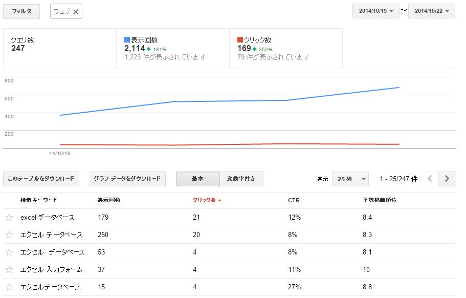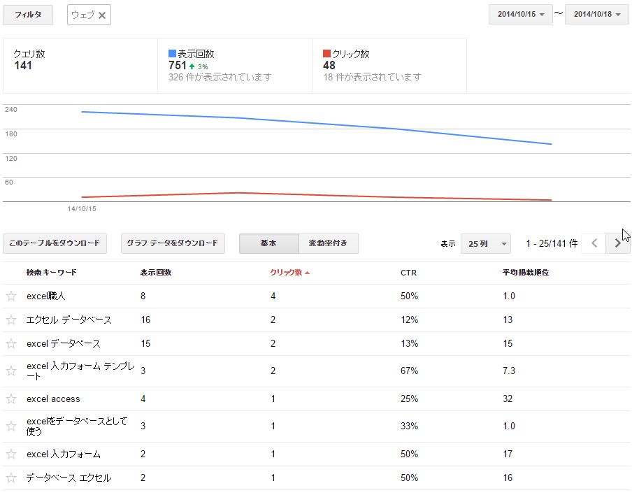 ブログは「エクセル データベース」「excel データベース」という検索キーワードで検索された場合にヒットしていることが解りました。