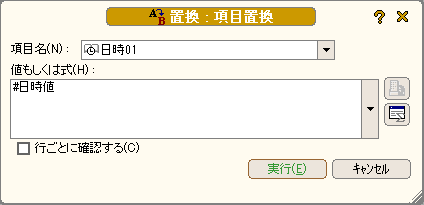 また、時間項目を置換する場合は、#日時値の中から時刻の値のみを取出して置換します。