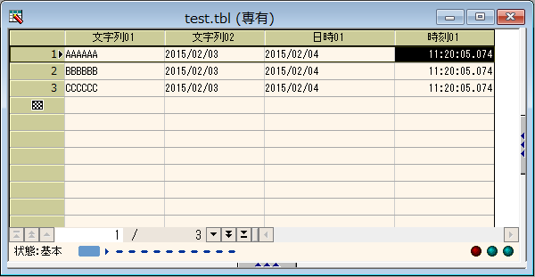 下図のように[日時01]のデータには、日付と時間がセットになって代入されています。