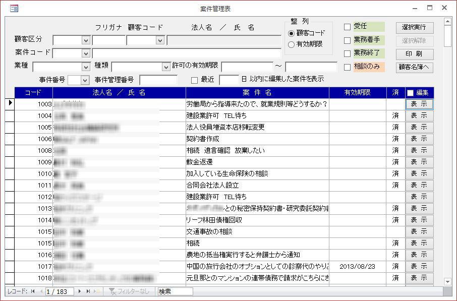 行政書士 顧客・案件(事件簿)管理のシステム概要