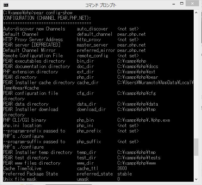 set PHP_PEAR_SYSCONF_DIR=C:¥xampp¥php(エンターキー)